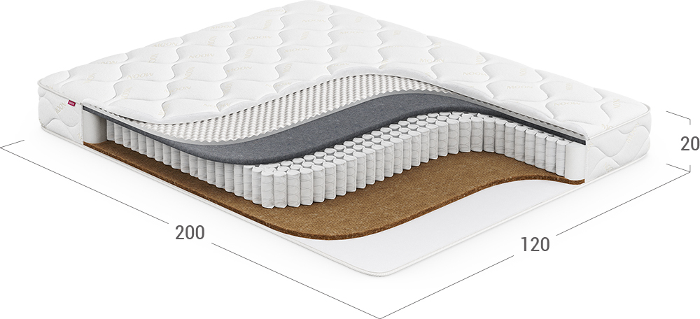 Матрас MOON FAMILY COMPLEX создан для тех, кто хочет все и сразу! Позволяет спать с максимальным удобством и дарит дополнительный расслабляющий эффект.