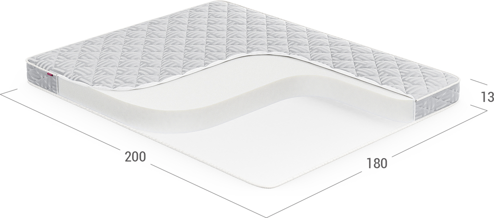 Беспружинный матрас по оптимальной цене. Модель хорошо переносит перепады температур и влажности, поэтому подходит для использования в любом помещении.