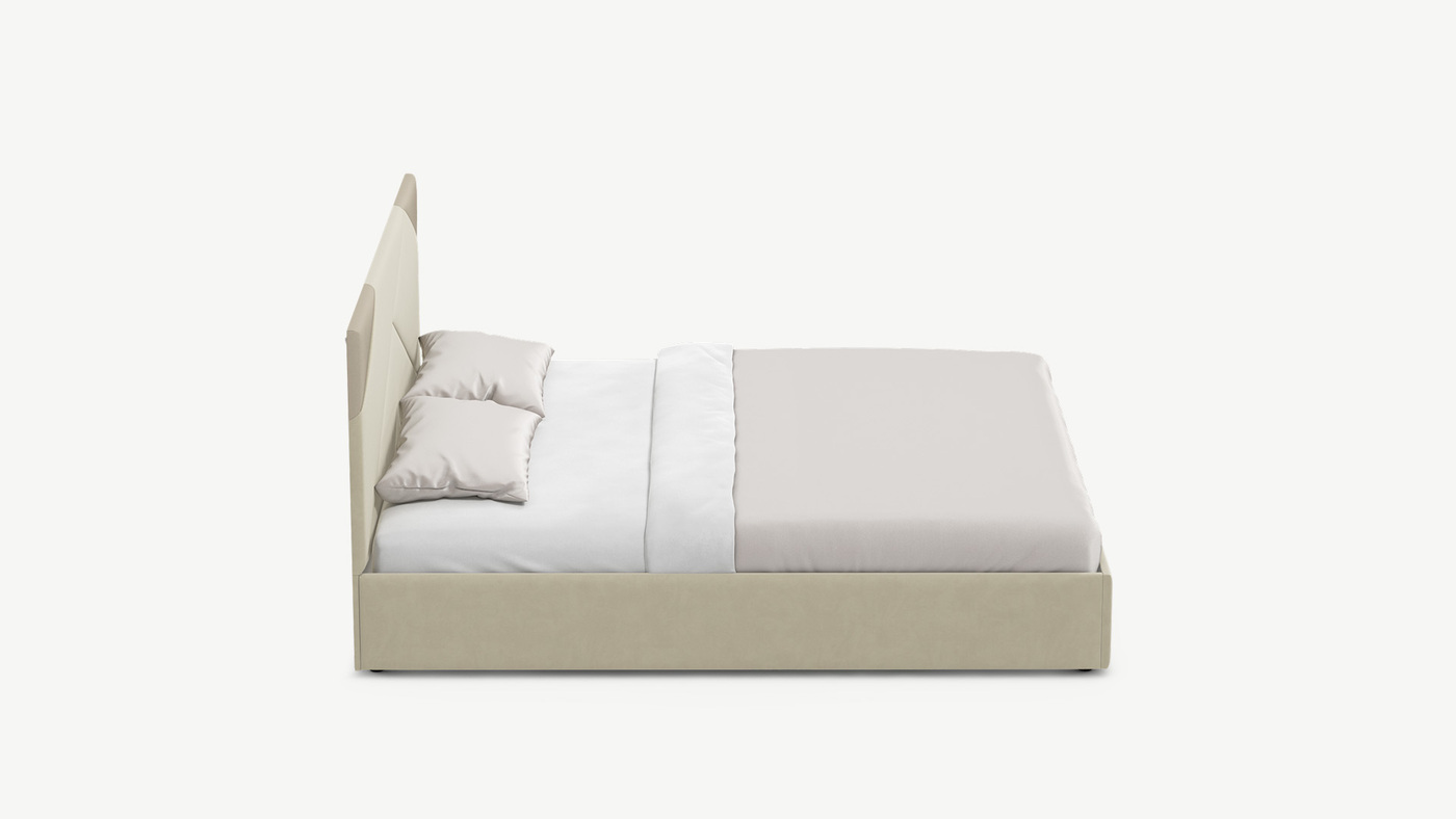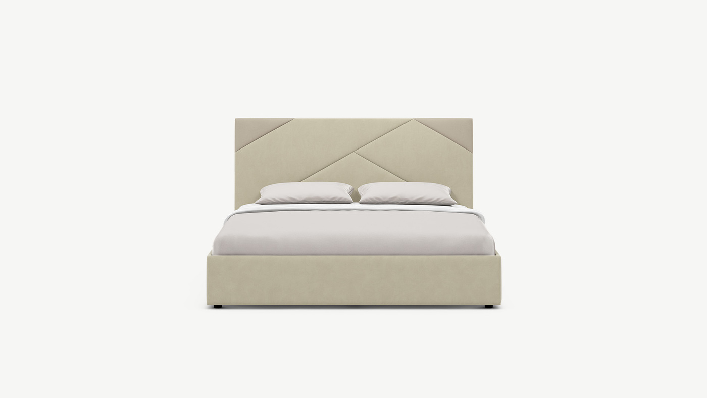 Кровать с подъёмным механизмом с выбором опорMOON FAMILY 1257 привлекает внимание оригинальным исполнением: широкие полосы ткани эффектно пересекают периметр изголовья, создавая на нем графический орнамент. Элегантным и практичным акцентом служат скрытые карманы, расположенные по его углам. Лаконичные формы объемных царг создают единый гармоничный образ и фокусируют внимание на центральном текстурном элементе кровати.