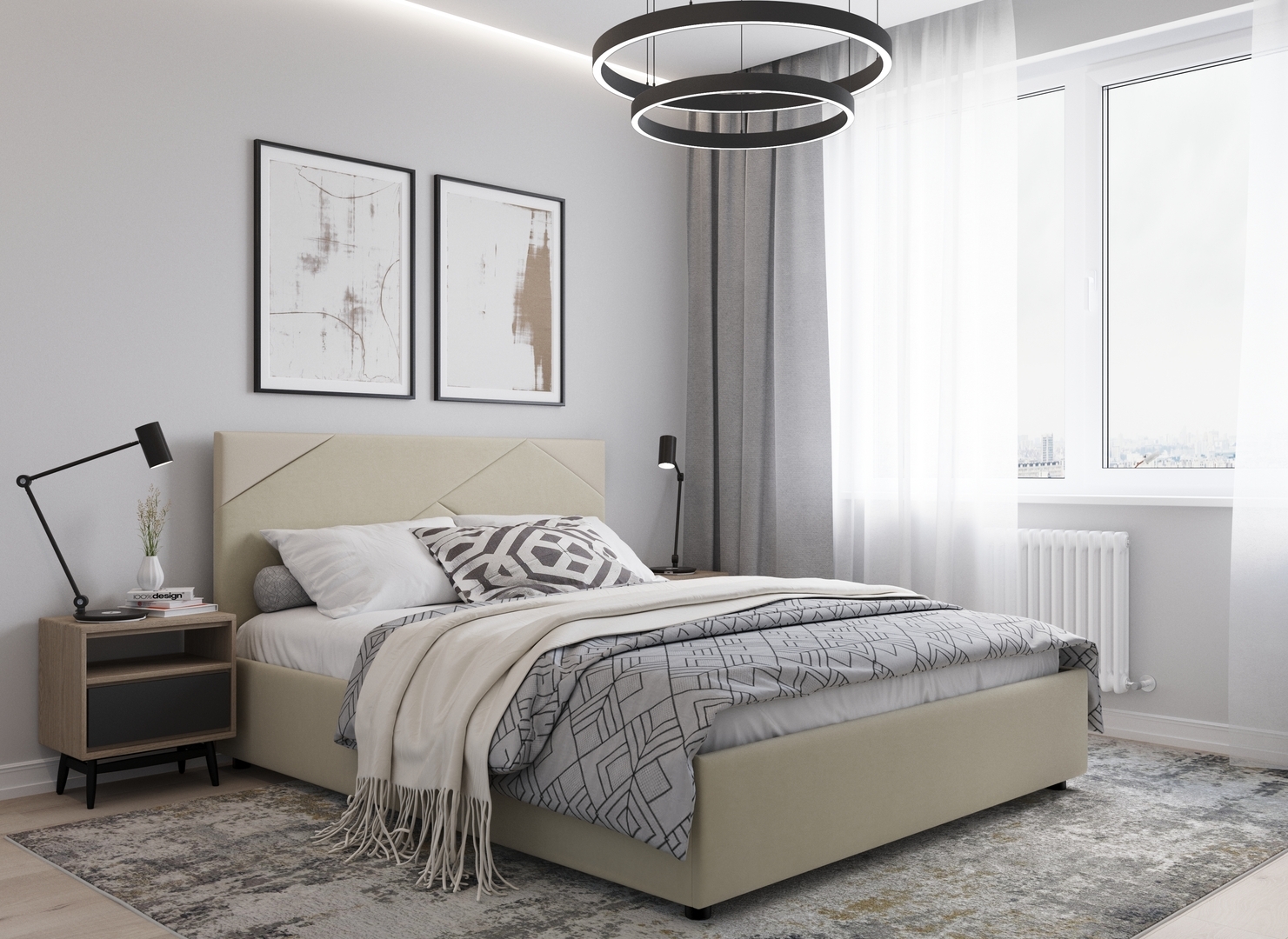 Создать гармоничный интерьер и завершить образ спальни помогут дополнительные аксессуары, например: тумбы, банкетки, подушки.