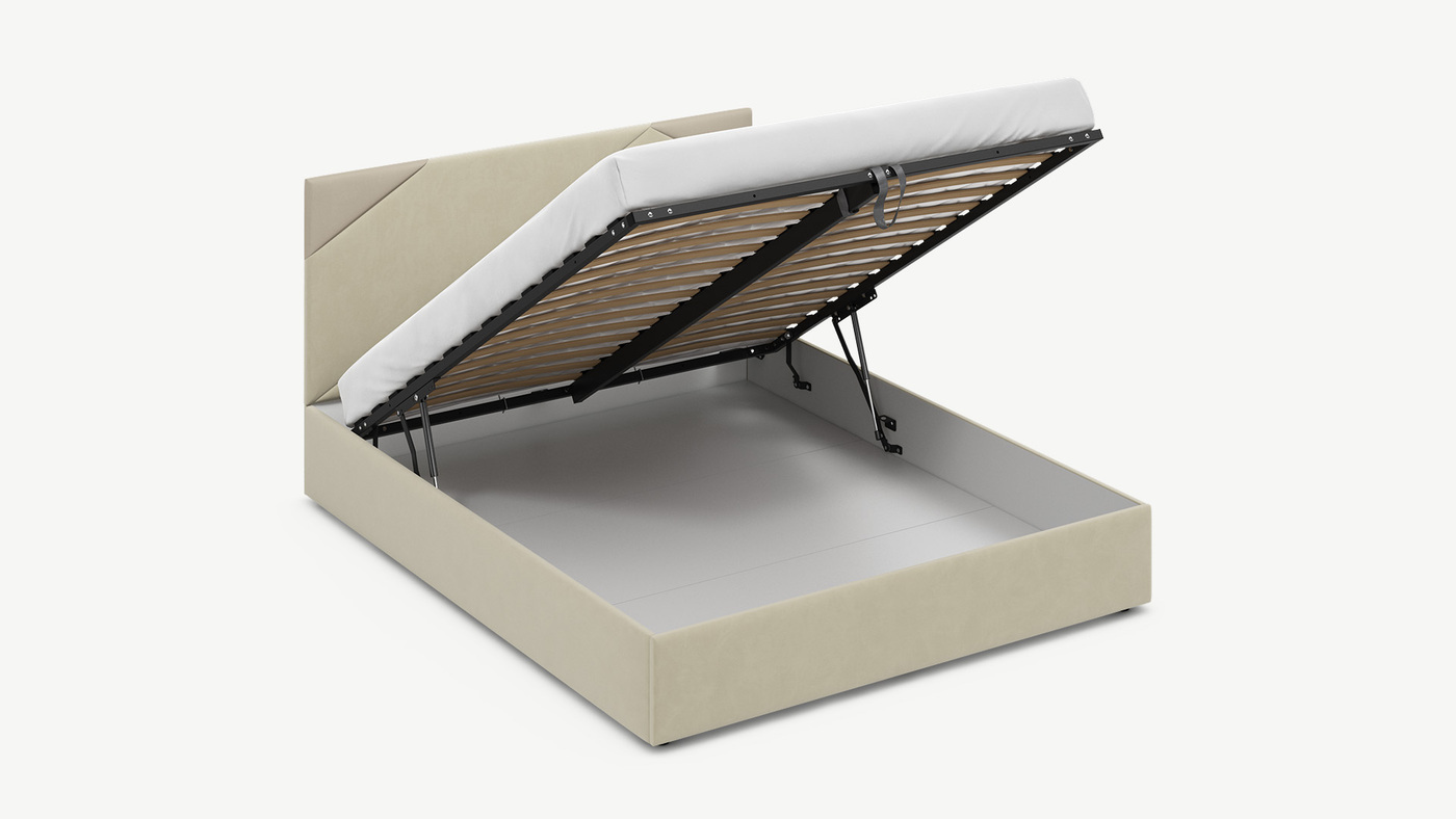 - Скрытая под основанием вместительная емкость без внутренних перегородок позволяет использовать всю площадь подкроватного пространства для хранения вещей.