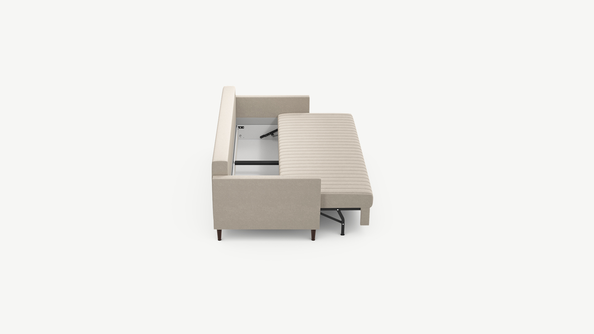 Механизм трансформации «Пантограф» подходит для ежедневного использования. Диван легко раскладывается и складывается, не повреждая напольное покрытие. Диван стоит на четырех основных опорах, в то время как дополнительные остаются скрытыми, появляясь плавно и бесшумно в единственно нужный момент — при трансформации дивана в кровать.