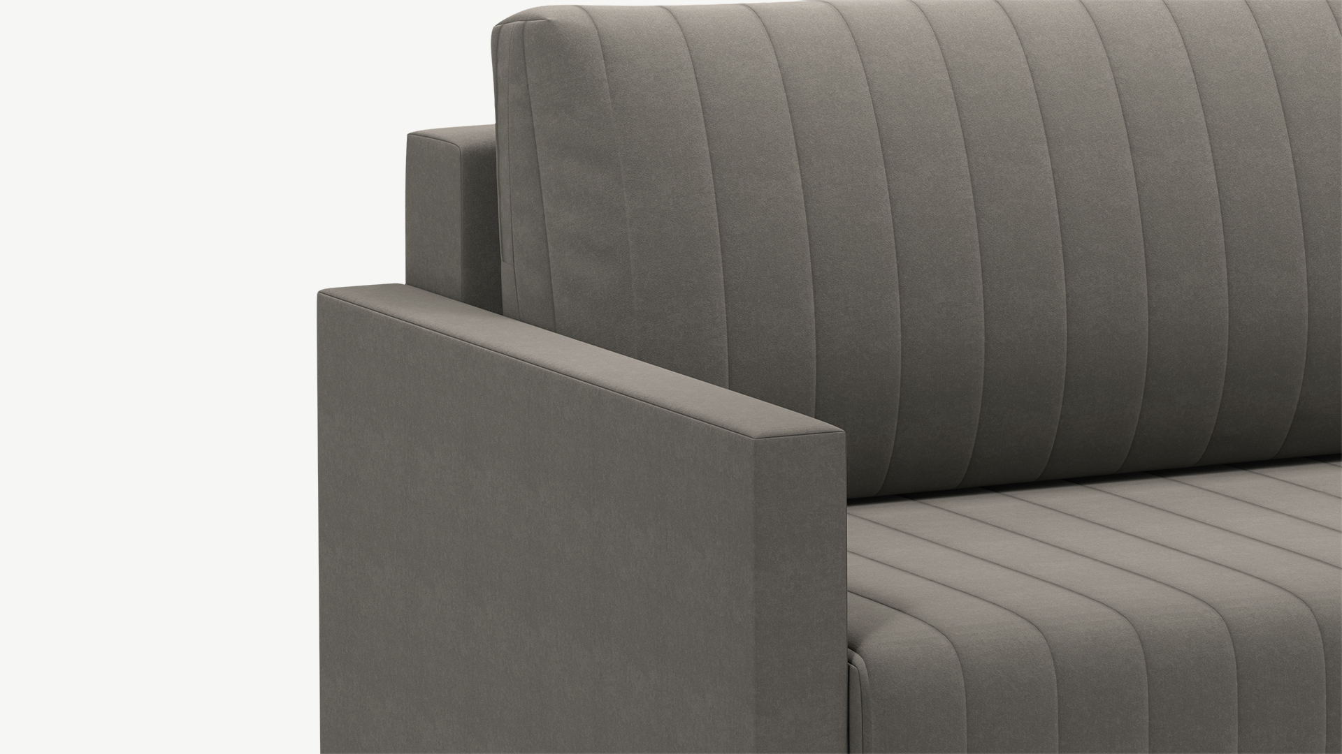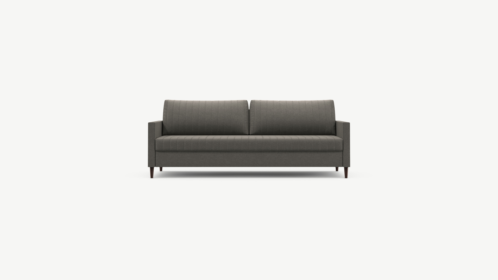 Ритмичный ряд вертикальных линий «багетной стежки» визуально вытягивает фигуру дивана, выгодно обыгрывая геометрию окружающего пространства. Высокие опоры добавляют конструкции легкости. Узкие подлокотники завершают образ дизайна, акцентируя внимание на силуэт MOON FAMILY 143.