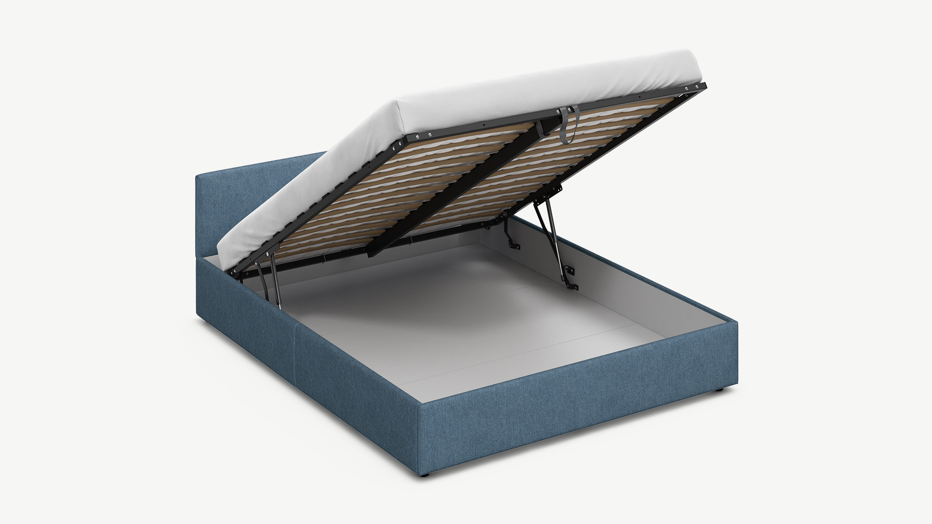• Скрытая под основанием вместительная емкость без внутренних перегородок позволяет использовать всю площадь подкроватного пространства для хранения вещей.