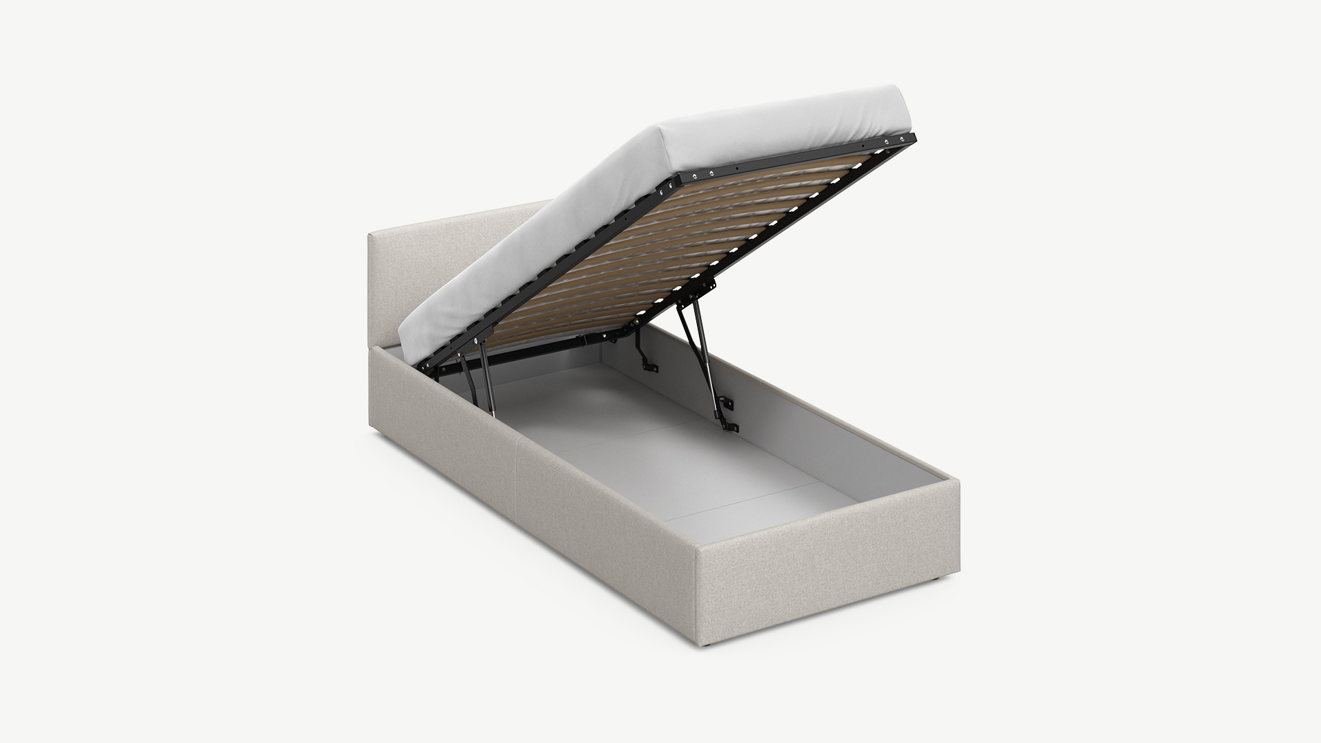 • Скрытая под основанием вместительная емкость без внутренних перегородок позволяет использовать всю площадь подкроватного пространства для хранения вещей.