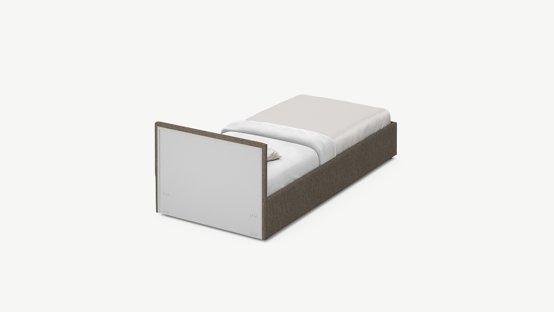 Фактура обивочного материала подбирается дизайнерами MOON с учетом технологических и стилевых особенностей кровати.