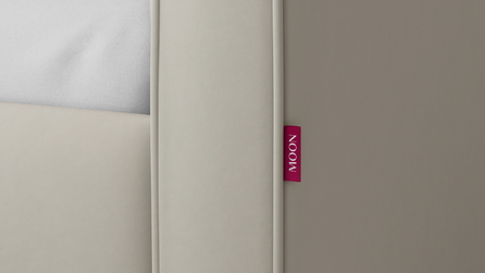 Изголовье подчеркивает эстетику MOON 1165, а также дарит дополнительный комфорт и уют спальному месту. Обратная сторона изголовья выполнена в мебельной ткани и позволяет ставить кровать в центре комнаты для зонирования пространства.