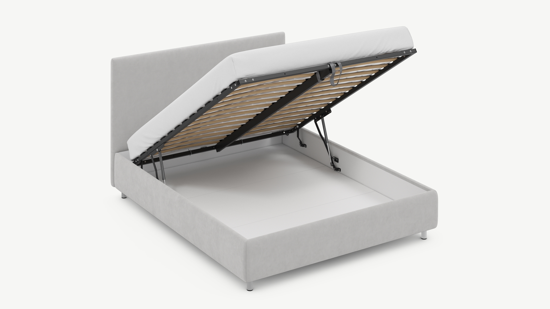 • Скрытая под основанием вместительная емкость без внутренних перегородок позволяет использовать всю площадь подкроватного пространства для хранения вещей.