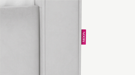 Изголовье подчеркивает эстетику MOON 1165, а также дарит дополнительный комфорт и уют спальному месту. Обратная сторона изголовья выполнена в мебельной ткани и позволяет ставить кровать в центре комнаты для зонирования пространства.