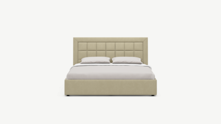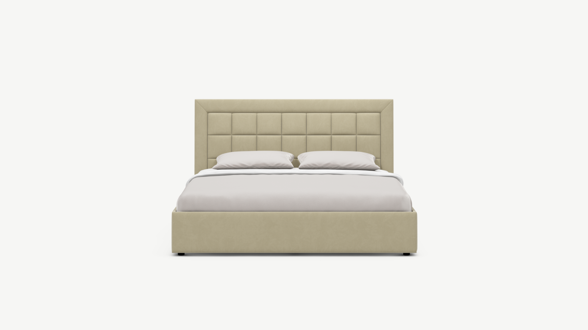 Лаконичная форма кровати MOON FAMILY 1251 украшена выразительным элементом, выделяющим этот Дизайн среди остальных. Изголовье декорировано рельефным рисунком стежки в крупный квадрат, получившим особую фактуру за счет глубины шва. Стежка помещена в центр изголовья и обрамлена, словно картина. Объемные царги завершают цельную фигуру кровати и становятся гармоничным дополнением ее образа.