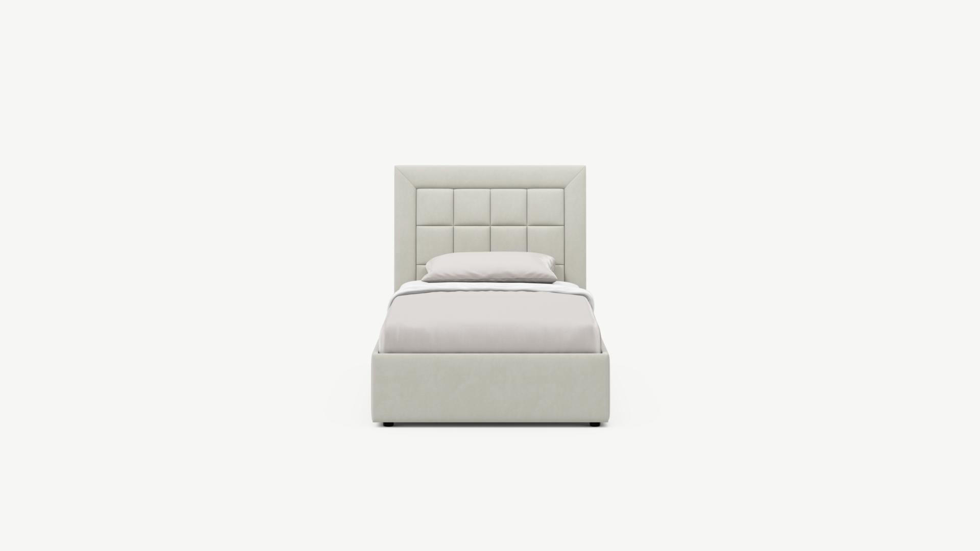 Кровать MOON FAMILY 1251 украшена объемной стежкой-рисунком. Особую выразительность стежка в крупный квадрат получает за счет глубины шва и фактурности проступающего рисунка. Помещенная в центр изголовья, стежка обрамлена тканью, словно картина – рамой. Формы MOON FAMILY 1251 оставлены максимально простыми. Едва заметные вертикальные шовчики на боковых царгах кровати добавляют образу шарма, удачно оттеняя уверенное звучание прямых и искусный декор изголовья.