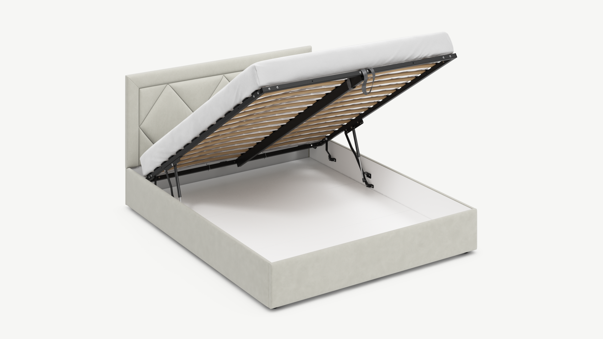 - Скрытая под основанием вместительная емкость без внутренних перегородок позволяет использовать всю площадь подкроватного пространства для хранения вещей.