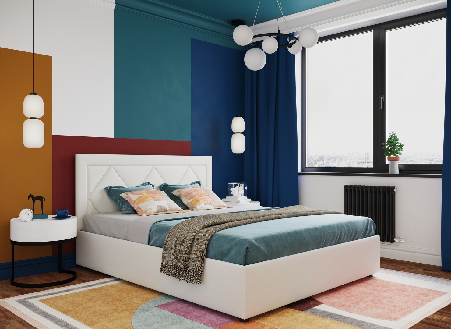 Создать гармоничный интерьер и завершить образ спальни помогут дополнительные аксессуары, например: тумбы, банкетки, подушки.