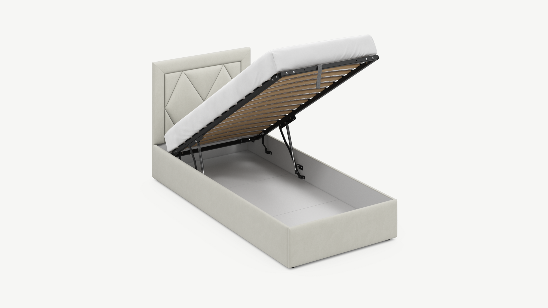 • Скрытая под основанием вместительная емкость без внутренних перегородок позволяет использовать всю площадь подкроватного пространства для хранения вещей.