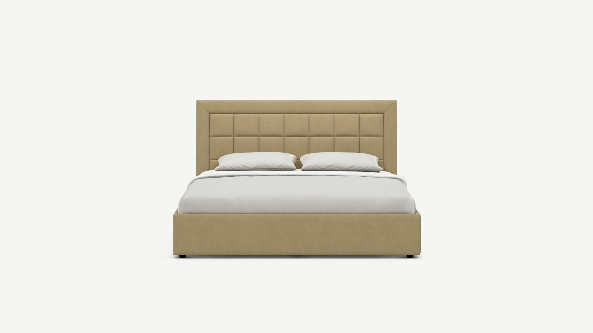 Изголовье декорировано рельефным рисунком стежки в крупный квадрат, получившим особую фактуру за счет глубины шва.