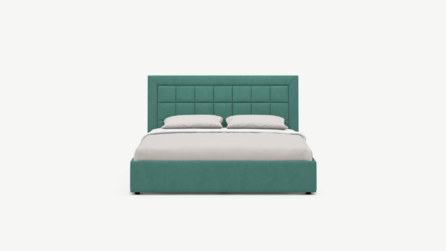 Изголовье декорировано рельефным рисунком стежки в крупный квадрат, получившим особую фактуру за счет глубины шва.