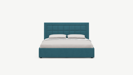 Изголовье декорировано рельефным рисунком стежки в крупный квадрат, получившим особую фактуру за счет глубины шва.