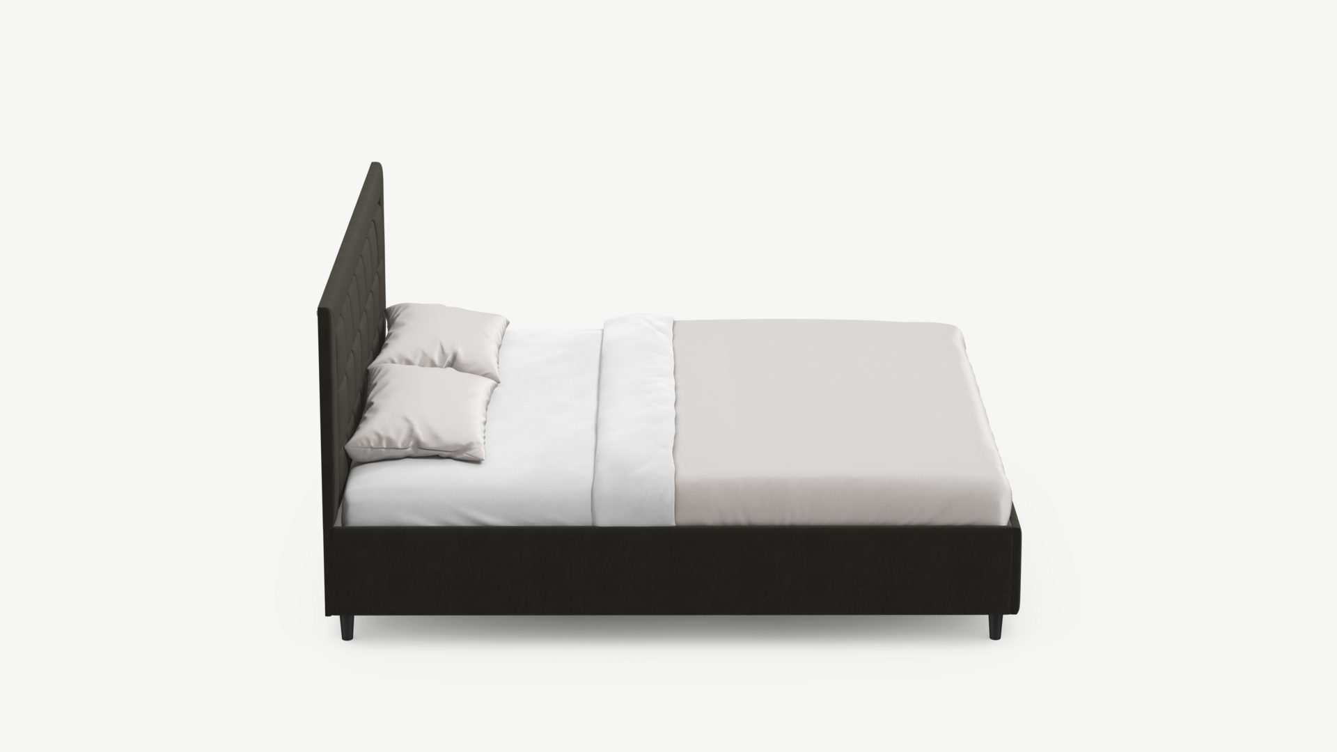 Стежка помещена в центр изголовья и обрамлена, словно картина. Объемные царги становятся гармоничным дополнением образа и завершают цельную фигуру кровати.