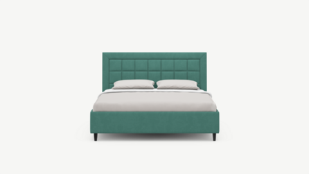 Изголовье декорировано рельефным рисунком стежки в крупный квадрат, получившим особую фактуру за счет глубины шва.