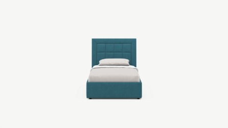 Изголовье декорировано рельефным рисунком стежки в крупный квадрат, получившим особую фактуру за счет глубины шва.