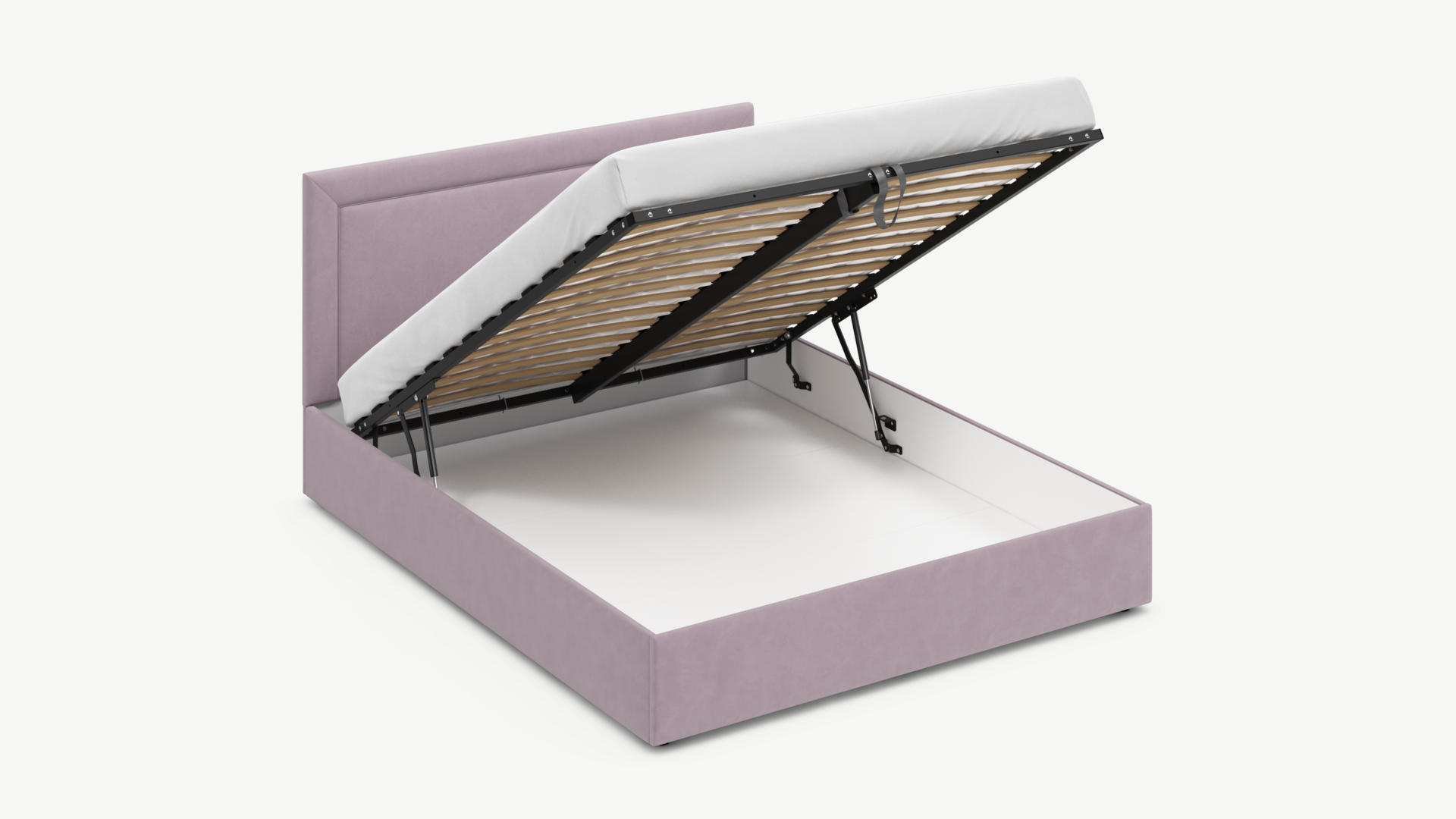 • Скрытая под основанием вместительная емкость без внутренних перегородок позволяет использовать всю площадь подкроватного пространства для хранения вещей.