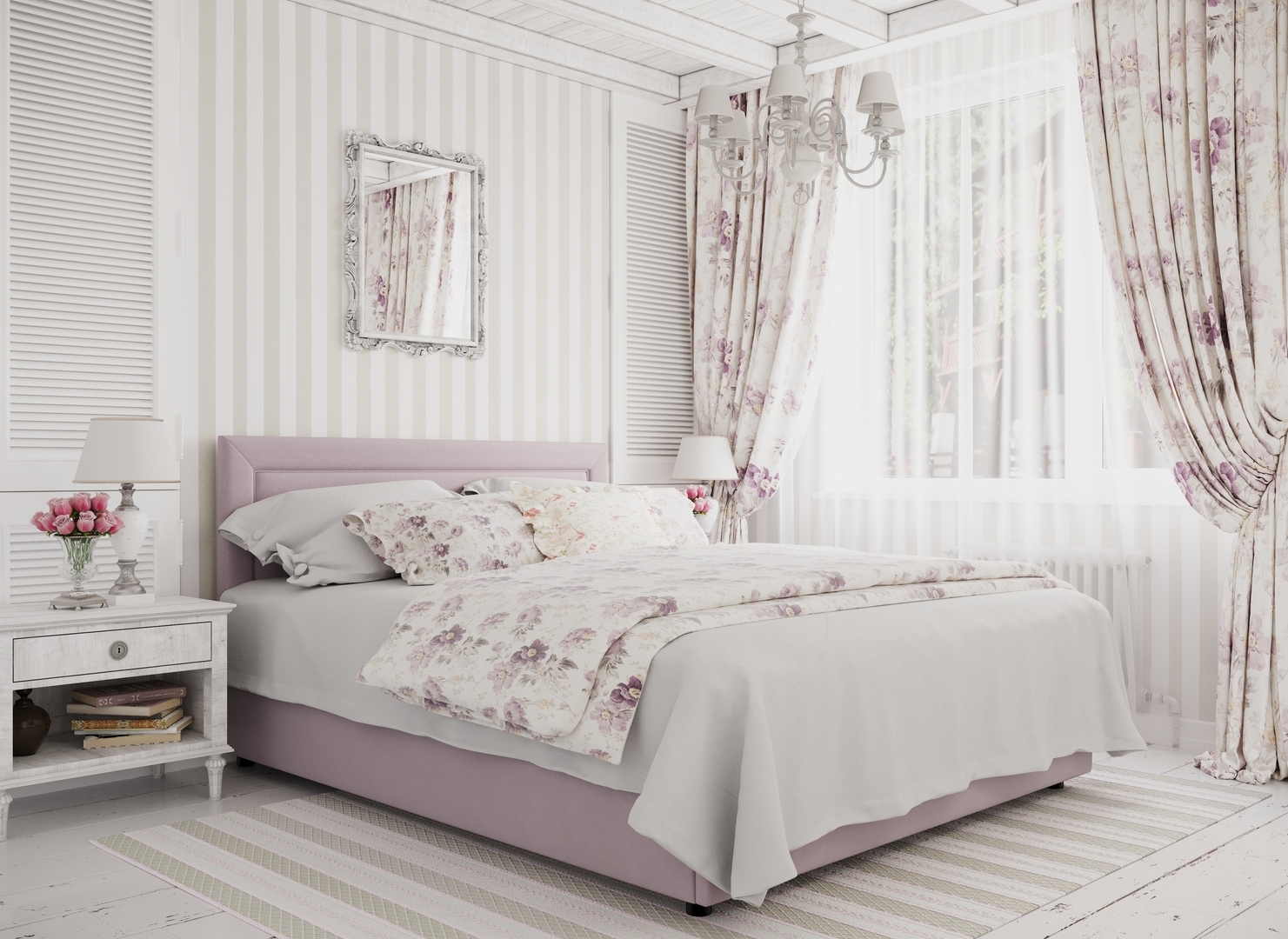 Создать гармоничный интерьер и завершить образ спальни помогут дополнительные аксессуары, например: тумбы, банкетки, подушки.