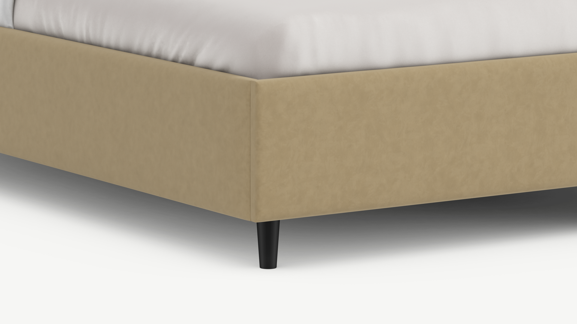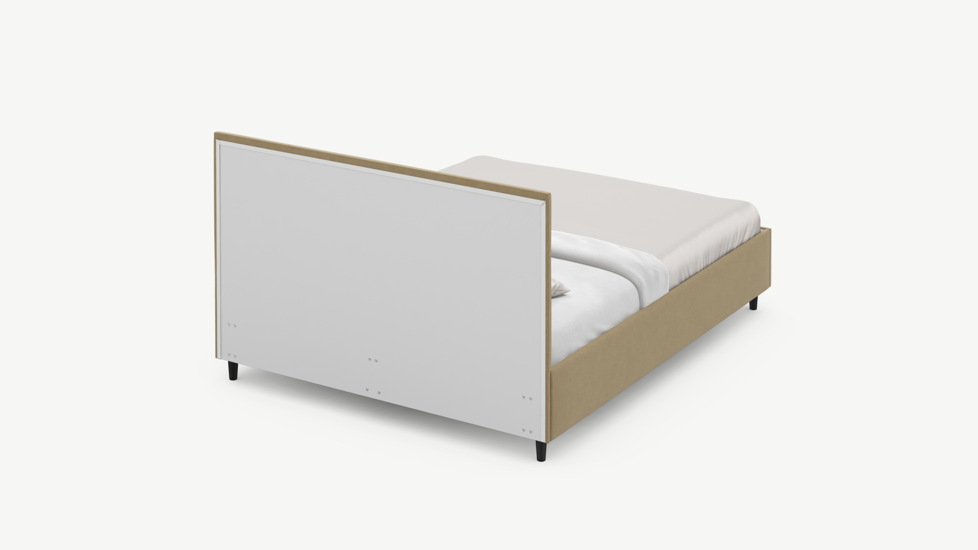 Элегантным и практичным акцентом служат скрытые карманы, расположенные по его углам. Лаконичные формы объемных царг создают единый гармоничный образ и фокусируют внимание на центральном текстурном элементе кровати.