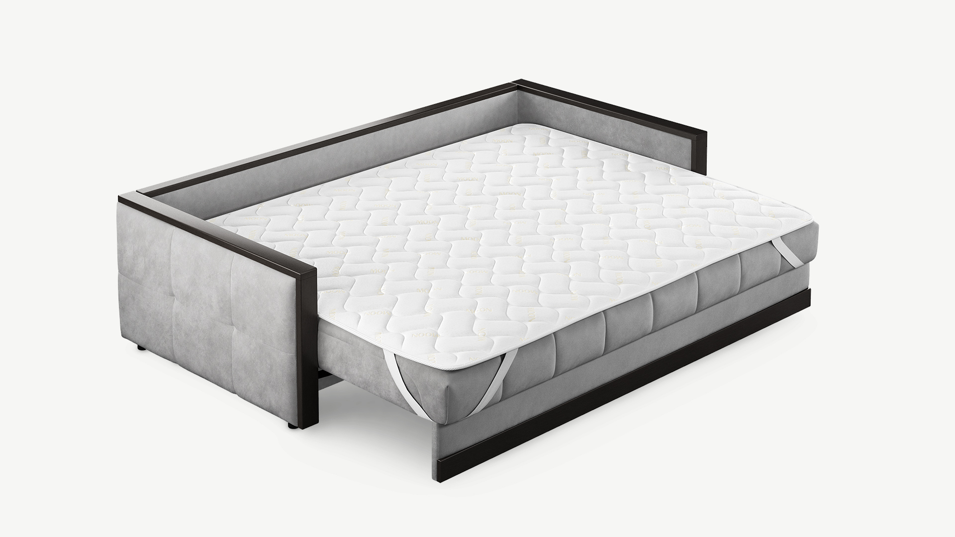 Ткань Fabric обладает хорошей воздухопроницаемостью, согревает в прохладную погоду и не нагревается в жару, поддерживая оптимальные условия для спокойного сна. Защищает поверхность от изнашивания, а также помогает поддерживать чистоту спального места.
