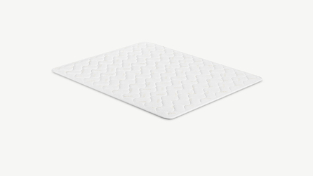 Наматрасник легко и надежно крепится к спальному месту с помощью широких резинок в четырех угловых точках.