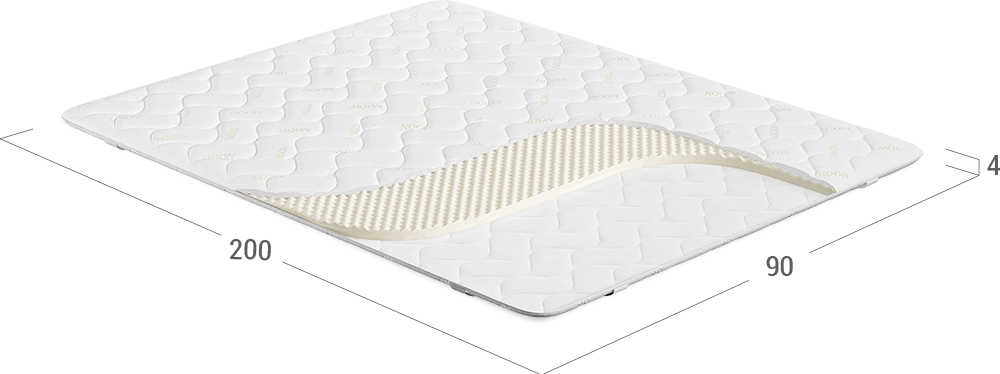 В основе топпера — плотная пена Comfortfoam massage, которая воздействует как множество микропружин, обеспечивая упругую поддержку тела, снимает лишнюю нагрузку с мышц и помогает расслабиться. Ячеистая резка пены оказывает легкий массажный эффект и улучшает кровообращение.