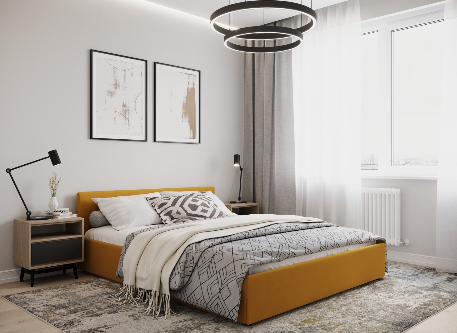 Создать гармоничный интерьер и завершить образ спальни помогут дополнительные аксессуары, например: тумбы, банкетки, подушки.