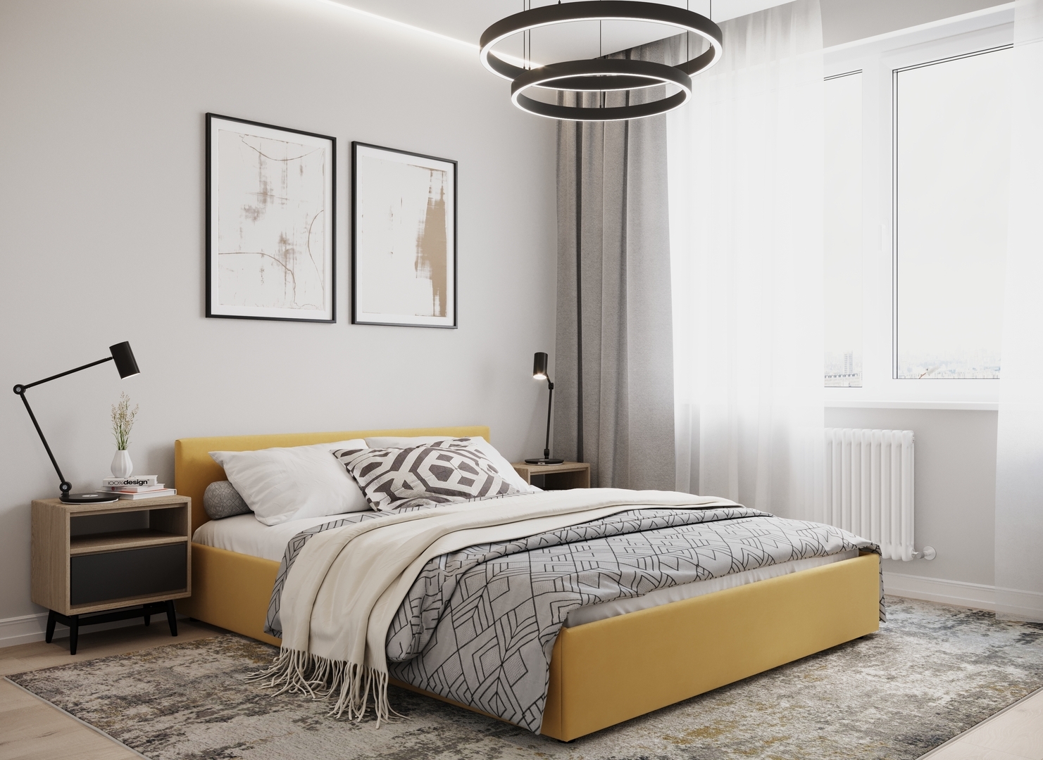 Создать гармоничный интерьер и завершить образ спальни помогут дополнительные аксессуары, например: тумбы, банкетки, подушки.