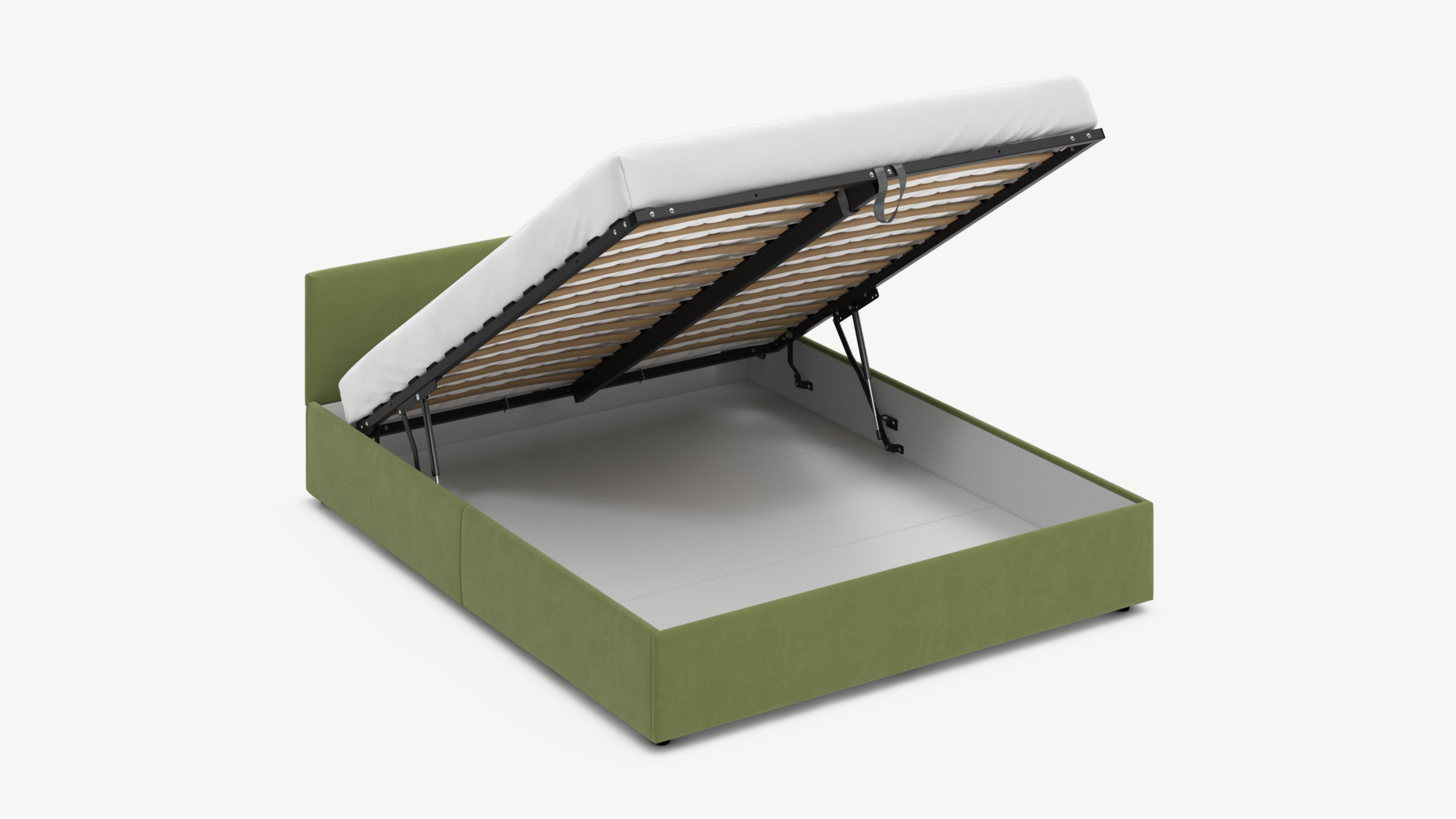• Скрытая под основанием вместительная емкость без внутренних перегородок позволяет использовать всю площадь подкроватного пространства для хранения вещей.