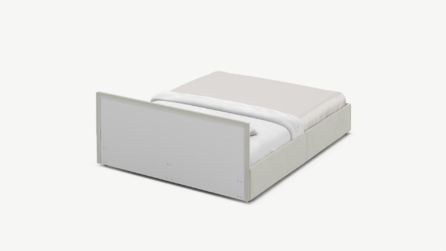 Фактура обивочного материала подбирается дизайнерами MOON с учетом технологических и стилевых особенностей кровати.