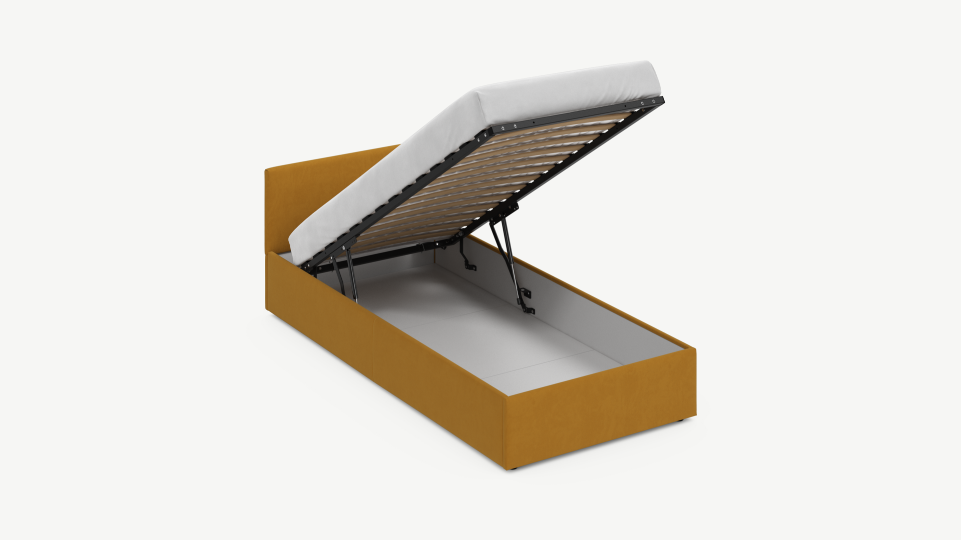 • Скрытая под основанием вместительная емкость без внутренних перегородок позволяет использовать всю площадь подкроватного пространства для хранения вещей.