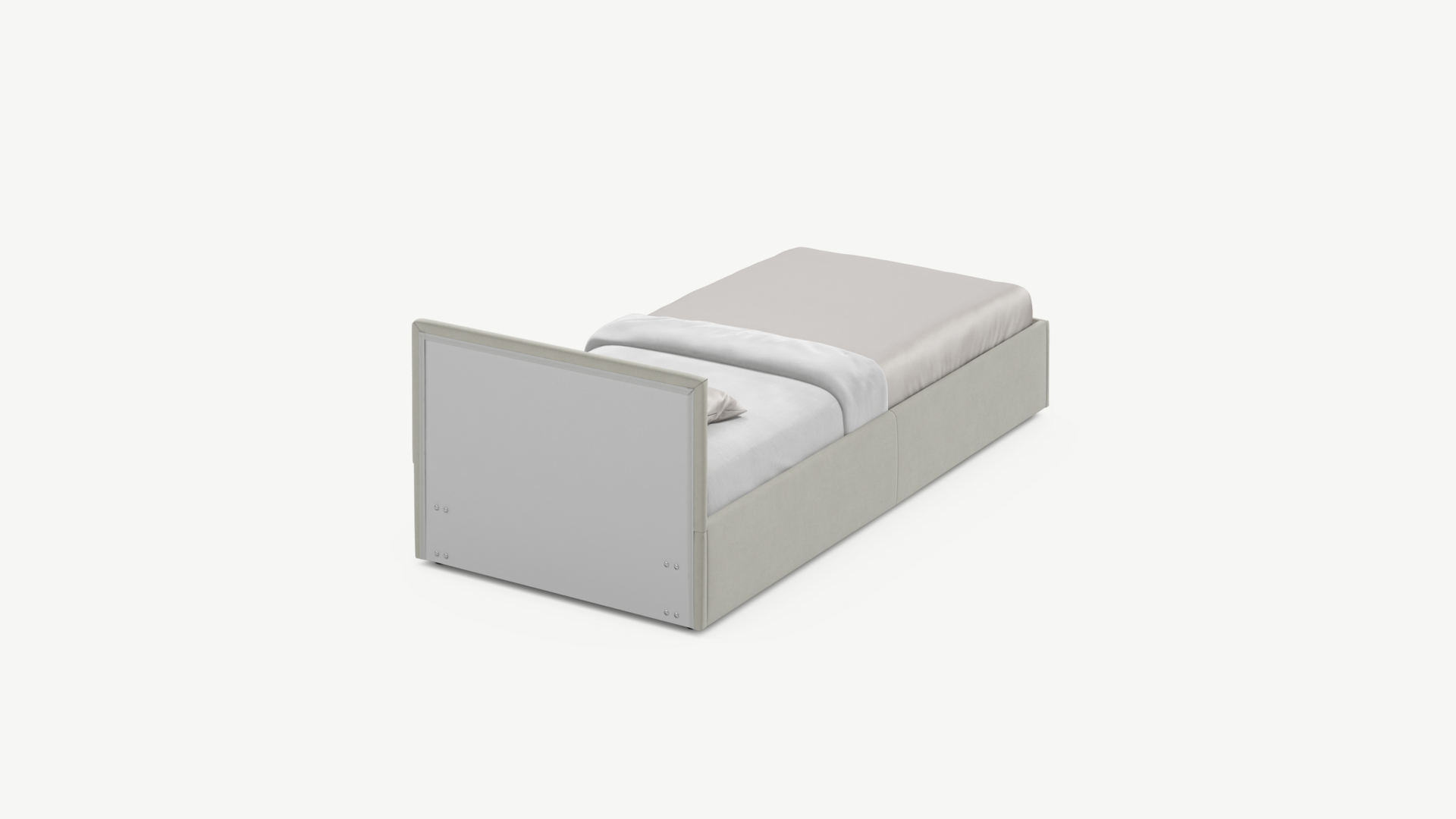 Фактура обивочного материала подбирается дизайнерами MOON с учетом технологических и стилевых особенностей кровати.