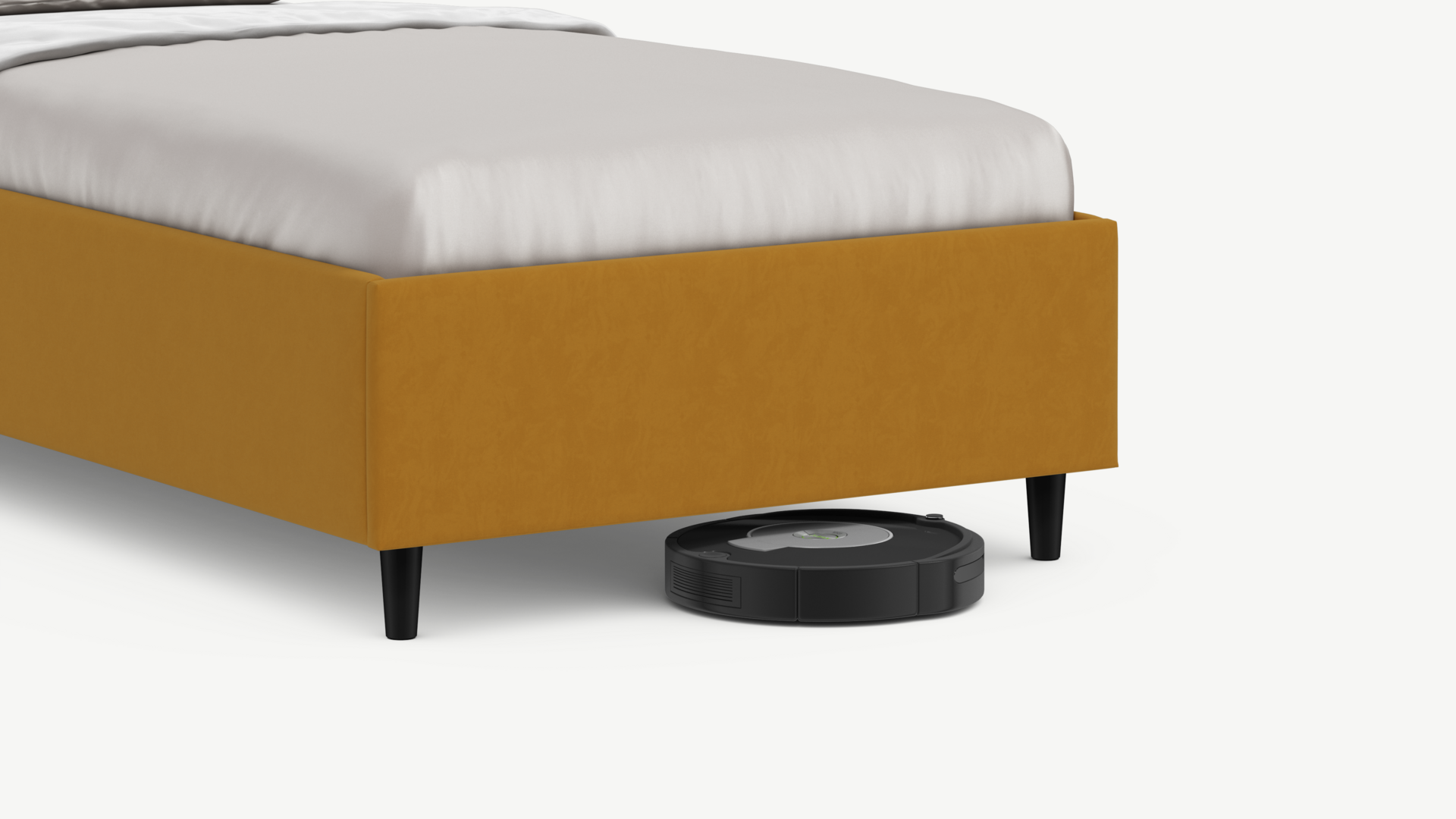 Благодаря высоким опорам под кроватью проходит робот-пылесос и легко проводится влажная уборка, что обеспечивает чистоту и порядок в доме.