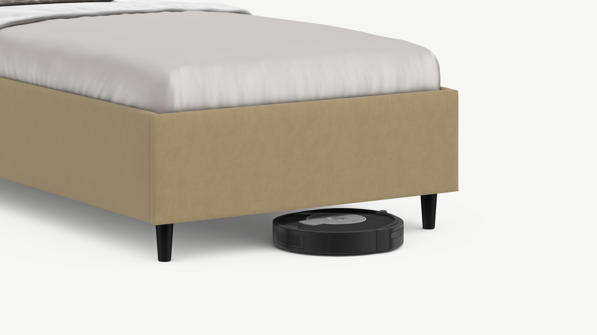 Благодаря высоким опорам под кроватью проходит робот-пылесос и легко проводится влажная уборка, что обеспечивает чистоту и порядок в доме.