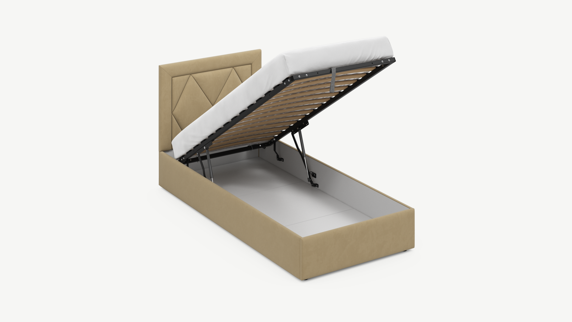 • Скрытая под основанием вместительная емкость без внутренних перегородок позволяет использовать всю площадь подкроватного пространства для хранения вещей.