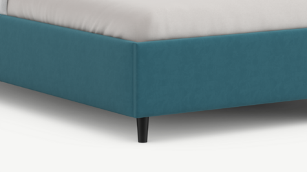 Царга, задающая пропорции, благодаря гладкости своей фактуры подчеркивает центральный элемент декора. Высокие опоры приподнимают фигуру кровати над полом и добавляют её образу визуальной легкости.