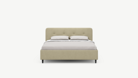 Царга, задающая пропорции, благодаря гладкости своей фактуры подчеркивает центральный элемент декора. Высокие опоры приподнимают фигуру кровати над полом и добавляют её образу визуальной легкости.