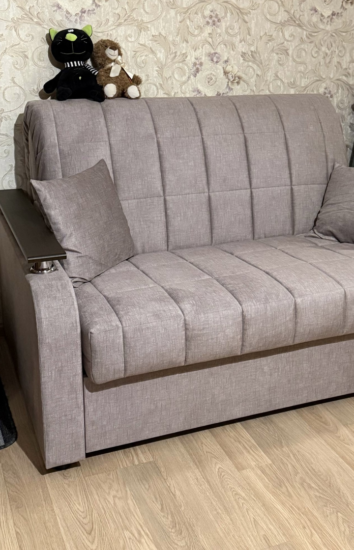 Компактный качественный диван , цвет бежевый очень красивый , гладенькая ткань , доставка и сборка оперативная, ребята молодцы 👍