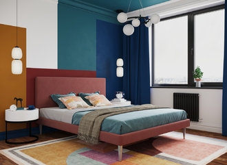 Кровать MOON FAMILY 1256 демонстрирует безупречный баланс изящных пропорций. Лаконичное изголовье, узкие царги и высокие опоры создают эффектный образ, привносящий в пространство спальни стильный и яркий акцент.