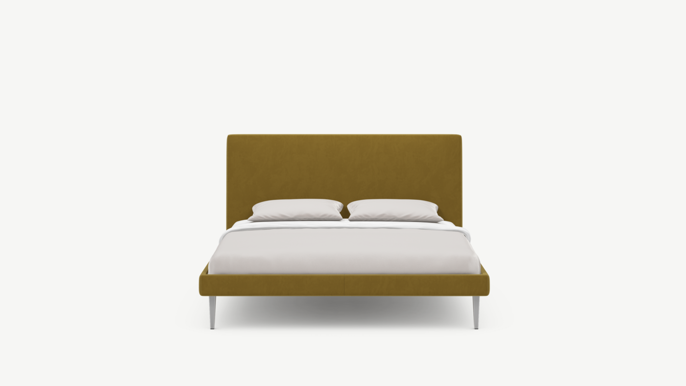Кровать MOON FAMILY 1256 демонстрирует безупречный баланс изящных пропорций. Лаконичное изголовье, узкие царги и высокие опоры создают эффектный образ, привносящий в пространство спальни стильный и яркий акцент.