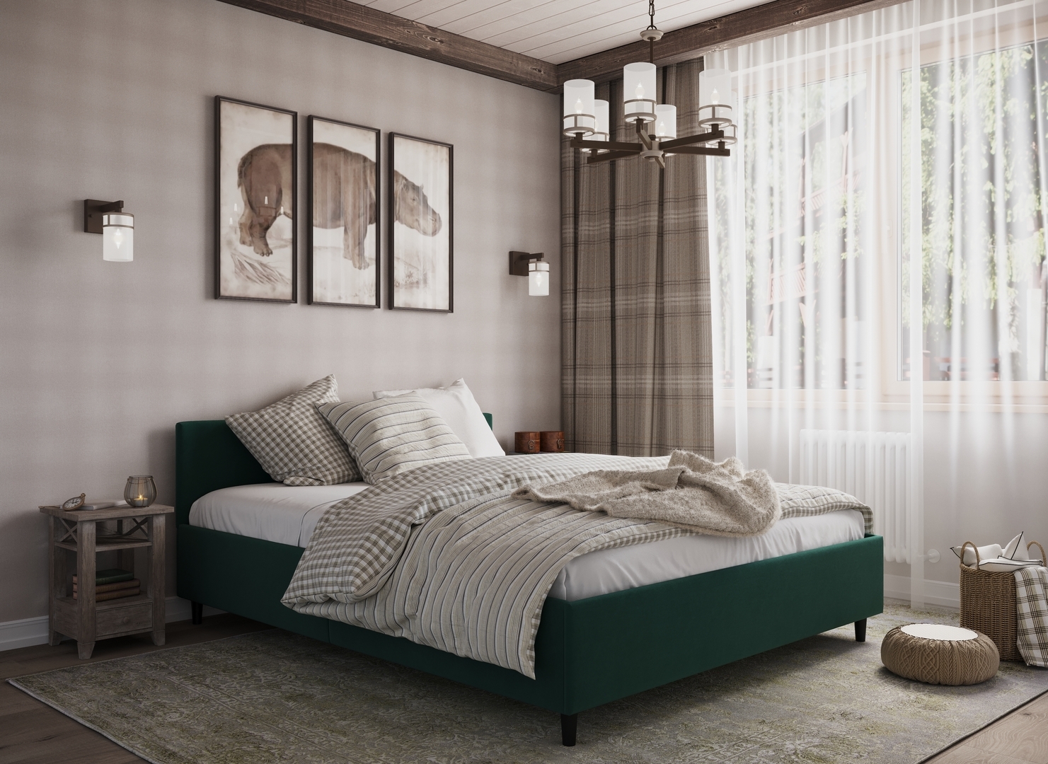 Создать гармоничный интерьер и завершить образ спальни помогут дополнительные аксессуары, например: тумбы, банкетки, подушки.