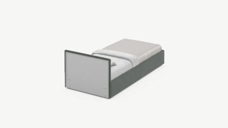 Фактура обивочного материала подбирается дизайнерами MOON с учетом технологических и стилевых особенностей кровати.