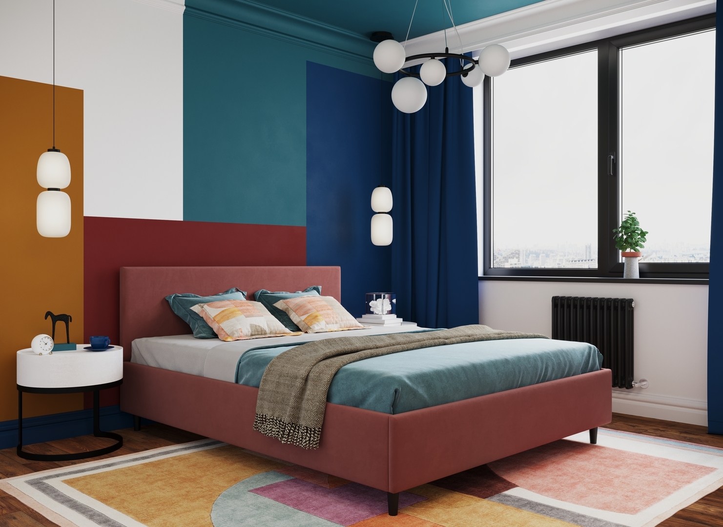 Создать гармоничный интерьер и завершить образ спальни помогут дополнительные аксессуары, например: тумбы, банкетки, подушки.