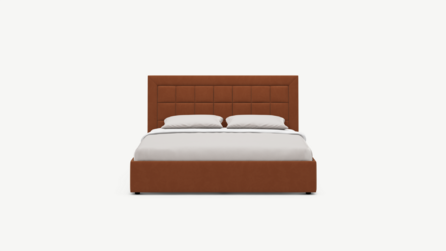 Изголовье декорировано рельефным рисунком стежки в крупный квадрат, получившим особую фактуру за счет глубины шва.