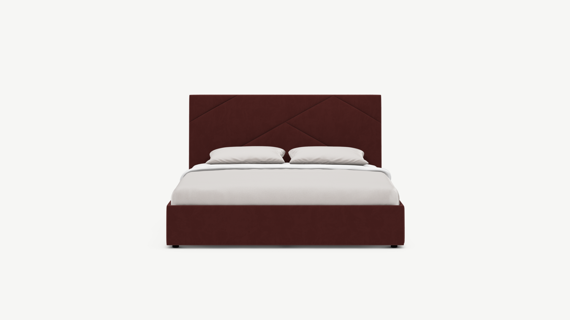 MOON FAMILY 1257 привлекает внимание оригинальным исполнением: широкие полосы ткани эффектно пересекают периметр изголовья, создавая на нем графический орнамент. Элегантным и практичным акцентом служат скрытые карманы, расположенные по его углам. Лаконичные формы объемных царг создают единый гармоничный образ и фокусируют внимание на центральном текстурном элементе кровати.