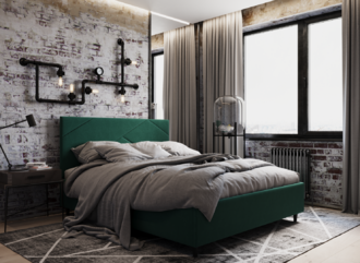 Элегантным и практичным акцентом служат скрытые карманы, расположенные по его углам. Лаконичные формы объемных царг создают единый гармоничный образ и фокусируют внимание на центральном текстурном элементе кровати.